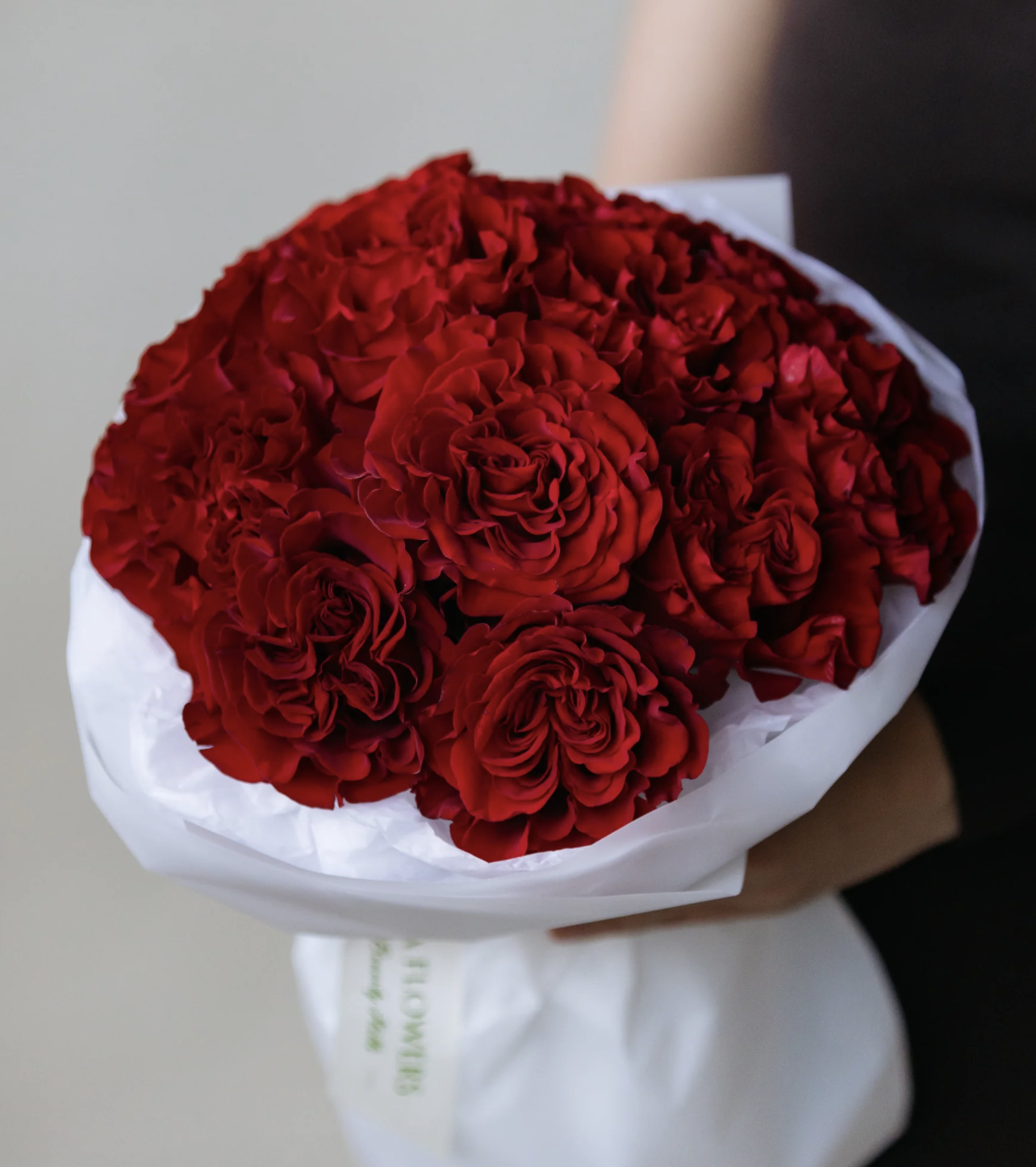 Scarlet Whisper is an enchanting bouquet of a dozen luxurious, deep red roses, each bloom radiating timeless beauty and charm. With their velvety, rich petals and captivating aroma, these roses symbolize passion and devotion, making them the ideal gift to express heartfelt emotions and admiration.
